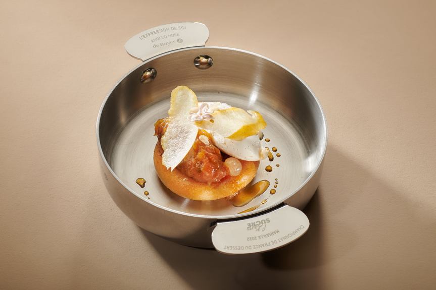 « Cette année, je souhaite que vous alliez chercher en vous les inspirations de votre dessert. « L’expression de soi », c’est elle qui doit être le moteur de votre créativité et de votre envie de faire évoluer les codes du dessert à l’assiette. Cette « expression de soi » est fondamentale pour vous accomplir, elle vous accompagnera toute votre vie, alors soyez vous-même, et exprimez-vous ! » (Angelo Musa).
