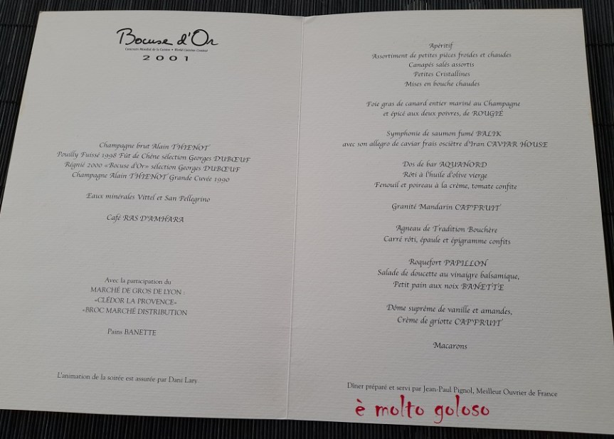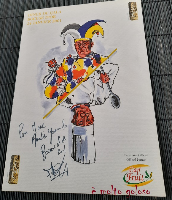 Menu Dîner de Gala du Bocuse d’Or 2001 – Dédicacé par François ADAMSKI Bocuse d’Or 2001 et MOF Cuisine 2007