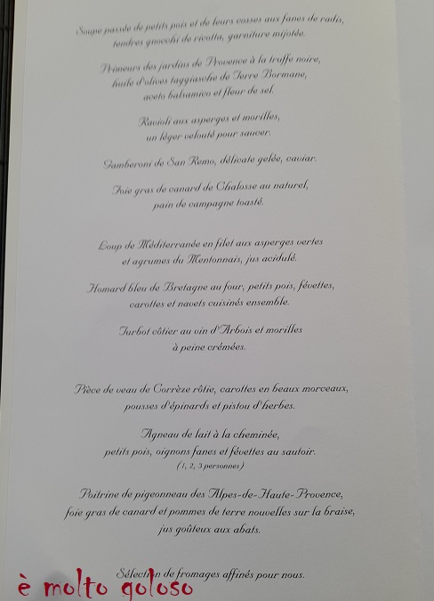 Menu des Dîners du 25 et 26 mai 2013 Grand Prix de F1 – Le Louis XV Hôtel de Paris Monaco.