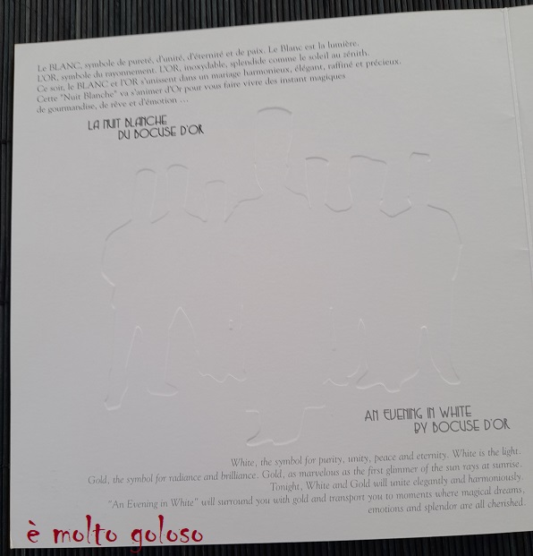 Menu du Dîner de Gala du Bocuse d’Or – mercredi 26 janvier 2005 – La Nuit blanche du Bocuse d’Or.