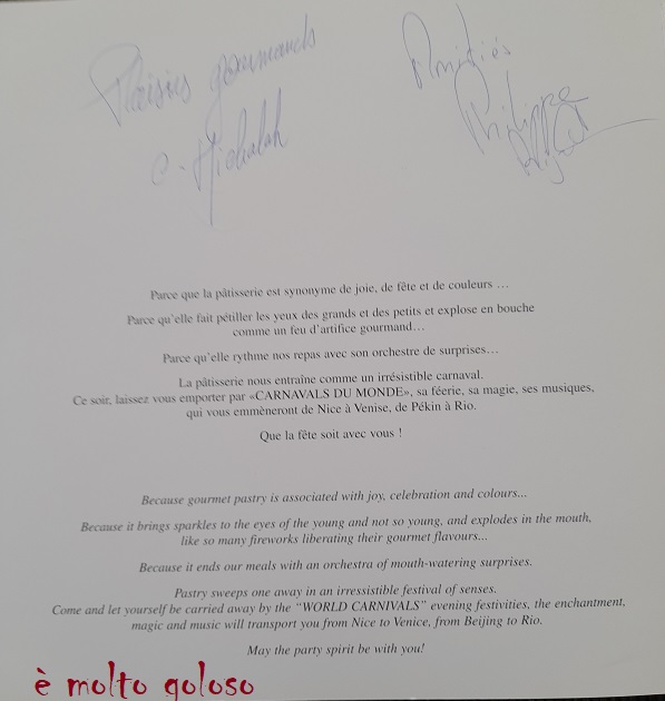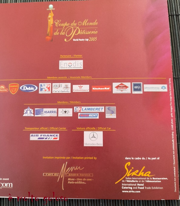 Menu du Dîner de Gala de la Coupe du Monde de la Pâtisserie 24 janvier 2005 – Carnavals du Monde.