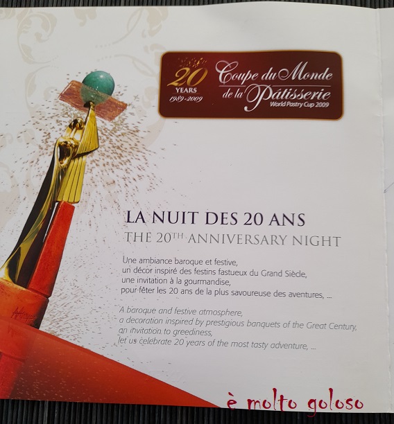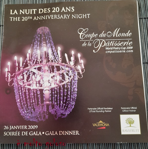 Menu du Dîner de Gala de la Coupe du Monde de la Pâtisserie 26 janvier 2009 – La Nuit des 20 Ans.