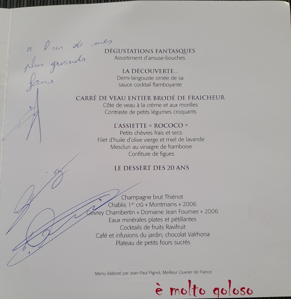 Menu de célébration des 40 Ans de 3 étoiles Michelin de Paul Bocuse à Collonges-au-Mont-d’Or.