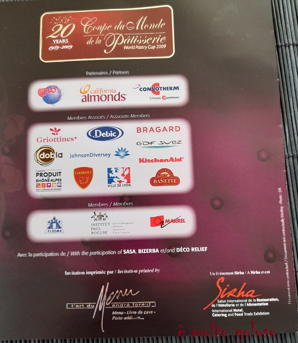 Menu de Gala de la Coupe du Monde de la Pâtisserie 2003 – French Folies – 27 janvier 2003 Palais des Congrès de Lyon.