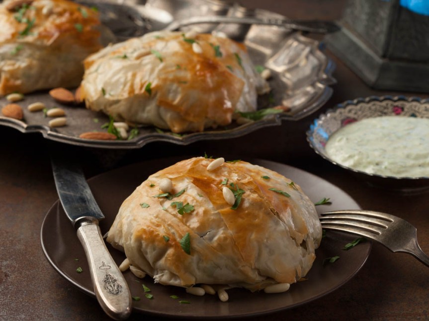 Le Ouzi est un plat traditionnel du Liban. Il est à base de riz et d’agneau cuit très lentement, le tout en pâte feuilletée avec petits pois, pignons de pin, pistaches, amandes émondées et épices diverses (poivres, cannelle..).