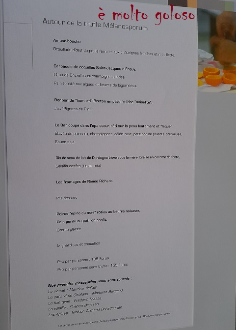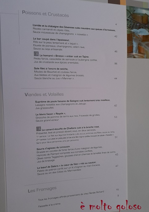 Carte conçue et réalisée par Philippe Gauvreau chef à l’époque (2 étoiles Michelin).