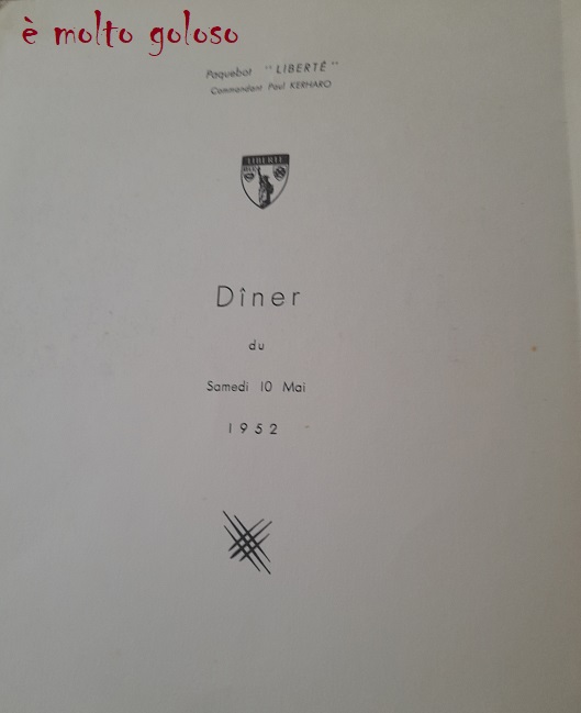 Menu du Dîner du 10 mai 1952 sur le Paquebot Liberté (Commandant Paul KERHARO).