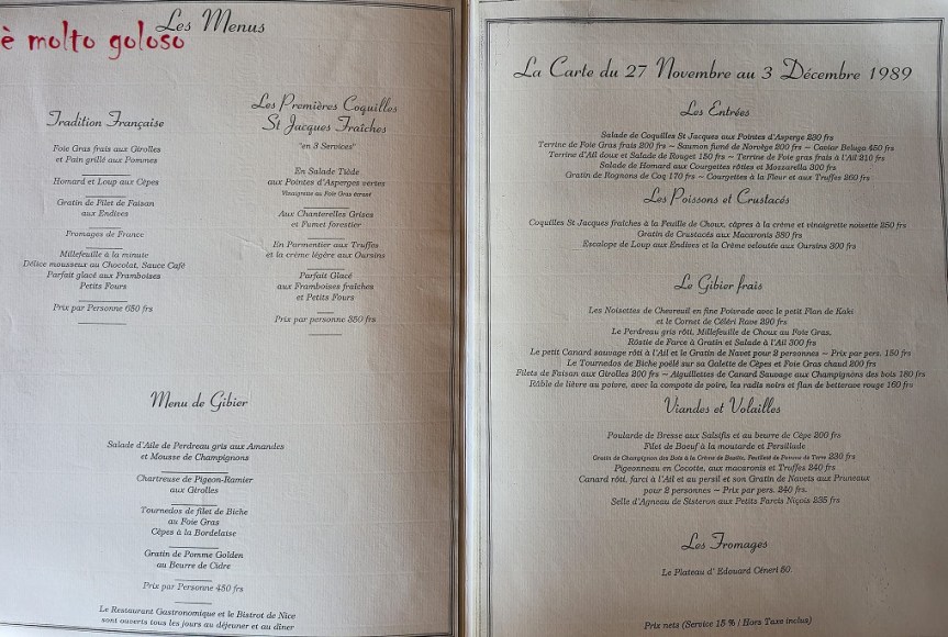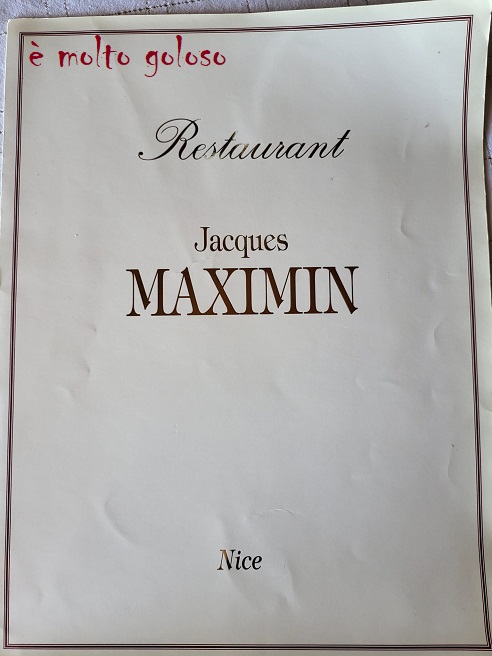 Carte du restaurant étoilé de Jacques Maximin (MOF Cuisine 1979) à Nice.