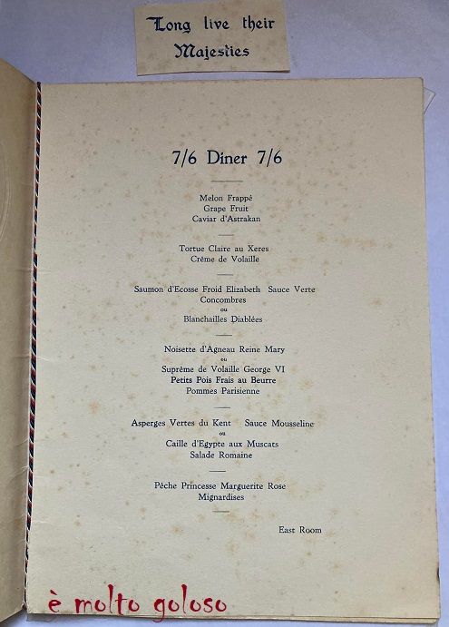 Ancien menu du The Criterion restaurant à Piccadilly Londres (1937).