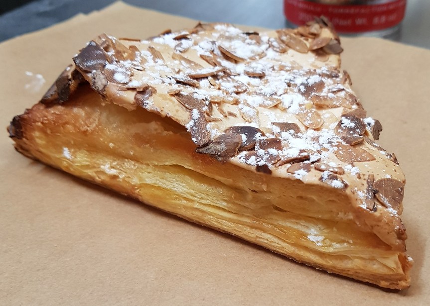 Le Jésuite est un petit gâteau feuilleté de forme triangulaire. Il est fourré d’une crème frangipane et recouvert de glace royale et amandes avant cuisson. Sucre glace pour finir après cuisson.