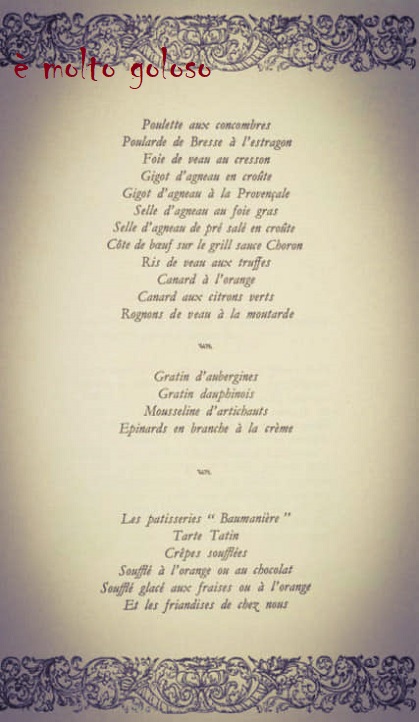 Saigné la veille, l’oiseau était cuit dans un bouillon très relevé et ensuite accompagné avec une sauce au raisin vert et au vinaigre. La poularde, les grives et autres volatiles étaient préparés de la même façon.