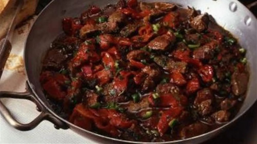 On donne également ce nom à un ragoût de veau ou de bœuf braisé avec du jambon de Bayonne en dés, des poivrons et des oignons.