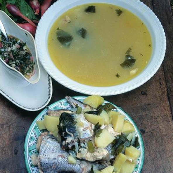 Cette soupe simple des pêcheurs consiste à cuire dans un bouillon aromatisé des pommes de terre et des oignons avec des poissons, voire des crustacés et coquillages.