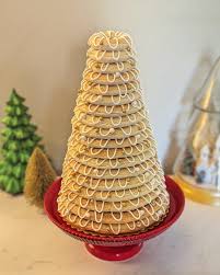 Le Kransekage est une pyramide composée de couronnes de pâte levée à la pâte d’amande de différentes tailles. Il est servi en général à la période de Noël ou du Nouvel An.