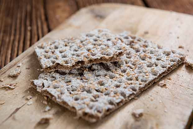 La Knäckebrot est une petite galette rectangulaire, mince et croustillante. Elle est réalisée avec de la farine complète de seigle ou, plus rarement de froment et parfois aromatisée de graines de sésame, de lin ou de cumin.