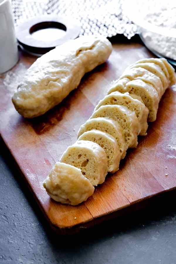 Elles s’apparentent un peu aux semmelknödel allemandes, mais encore plus à la mique du Lot et du Périgord car il s’agit de pâte à pain cuite dans de l’eau bouillante.