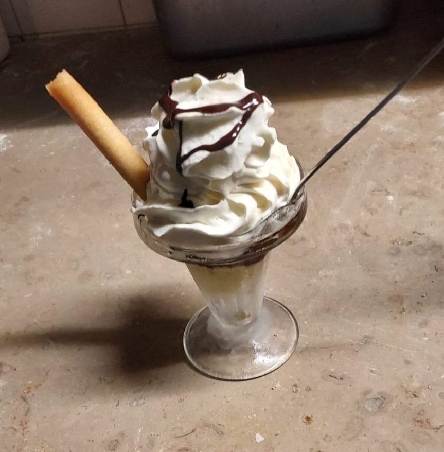 Il s’agit notamment d’une glace à la vanille, utilisée comme pâte à bombe ou servie avec avec de la crème fouettée et une sauce chocolat.