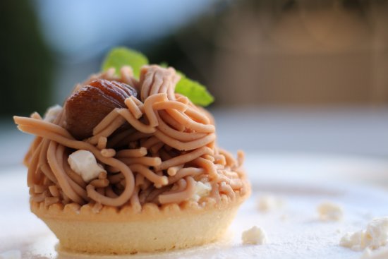 La Dorine est une tartelette garnie de crème de marrons et de crème pâtissière.
