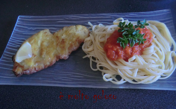 C’est une escalope de veau panée (farine, œufs battus, mie de pain avec parmesan râpé). Elle est cuite au beurre et servie avec citron, pâtes, sauce tomate ou tomate concassée.