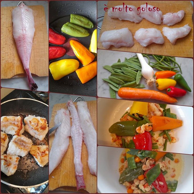 - Effiler 200 grammes de haricots verts et 200 grammes de pois gourmands. Les cuire ) l’anglaise séparément. Lever à la cuillère à racines 30 boules de carottes, les cuire à l’anglaise (croquantes). Laver, épépiner 4 mini poivrons de couleur (rouge, vert, jaune et orange), les couper en 2 et les étuver à l’huile d’olive.