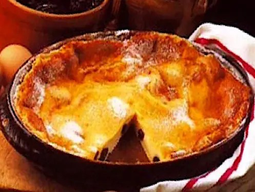 La Cajasse est un entremets périgourdin, c’est la spécialité de la ville de Sarlat, il est fait d’une pâte à crêpes aromatisée au rhum et additionnée de fruits (pruneaux, pommes..).