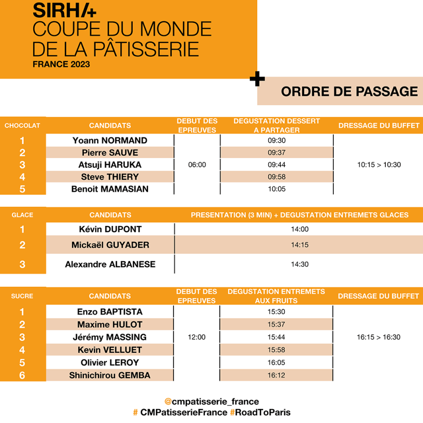 Chaque candidat – selon sa spécialité : chocolat, sucre ou glace – devra montrer sa maîtrise technique et sa capacité à créer un chef d’oeuvre sur place, devant un public.