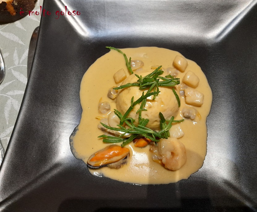- Dresser les dômes sur assiettes chaudes :napper de sauce et coquillages. Finir avec des salicornes.