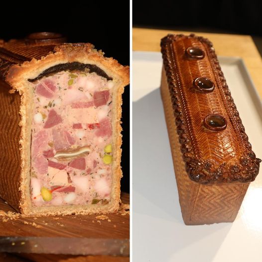 Pâté-croûte de pintade, pigeon, et cochon, gelée de consommé de pintade.