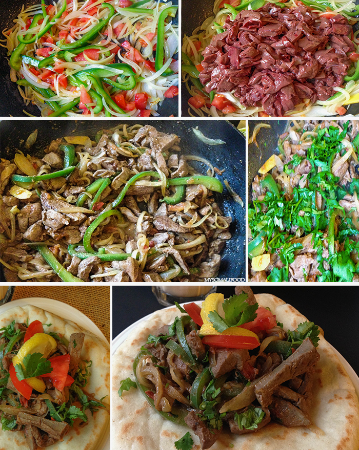 Le Beer est du foie de mouton (agneau ou chèvre) coupé en petits morceaux, oignons, poivron vert, tomates, citron, coriandre et piment vert.