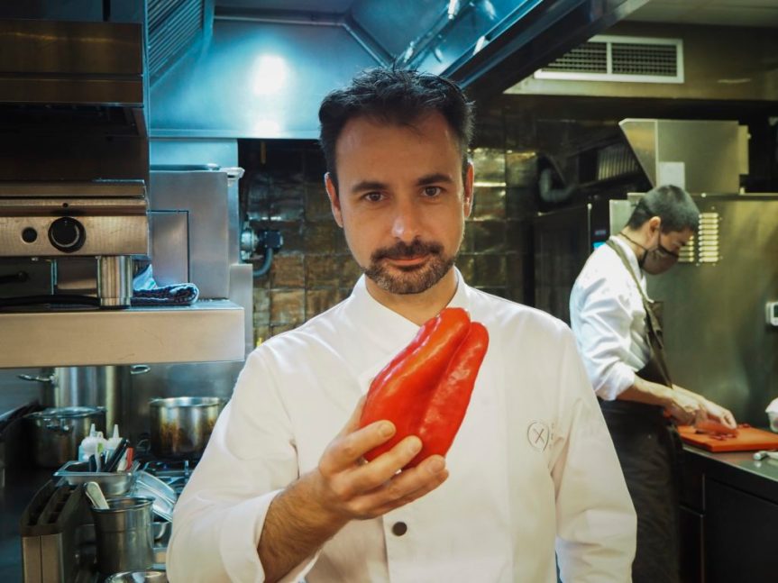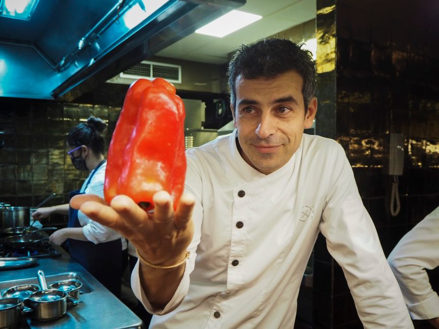 Situé dans le quartier de l’Eixample face au Marché du Ninot à Barcelone, Disfrutar (s’Amuser en français) s’est hissé en quelques années parmi les restaurants les plus créatifs de la péninsule ibérique. Après avoir passé 15 ans dans les cuisines d’El Bulli à Rosas et s’être fait la main dans leur autre restaurant (Compartir) à Cadaquès, Mateu Casañas, Oriol Castro et Eduard Xatruch imaginent à Barcelone une cuisine méditerranéenne d’avant-garde, osée et amusante qui leur a permis de décrocher trois étoiles au Guide Michelin en 2023.