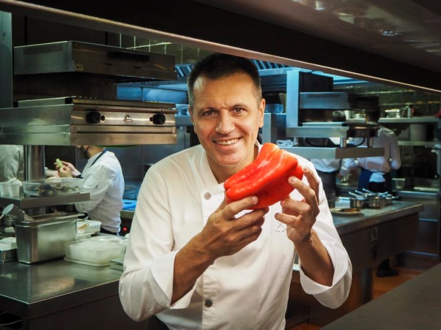 Oriol Castro est né le 23 mars 1974 à Barcelone. Après avoir suivi une formation académique à l’Escola Joviat de Manresa puis à l’école de pâtisserie Gremi, il démarre sa carrière professionnel en 1997 chez El Bulli. Son esprit innovant et sa détermination font mouche auprès des frères Albert et Ferran Adrià, célèbres chefs de ce restaurant espagnol. Durant ces nombreuses années chez El Bulli, Oriol Castro a également participé activement à des démonstrations et cours pour expliquer la philosophie et le style de cuisine d’El Bulli à travers le monde,. Depuis 2010, le chef est aussi membre du Conseil d’Honneur de l’Ecole Internationale de Cuisine de Valladolid. C’est également chez El Bulli qu’il rencontre Mateu Casañas et Eduard Xatruch, des collègues devenus amis avec qui il lance en 2012 le restaurant Compartir à Cadaqués. L’idée ? Proposer des plats posés au centre de la table à partager avec les autres convives. En 2014, les trois partenaires ont monté leur deuxième restaurant, Disfrutar à Barcelone.