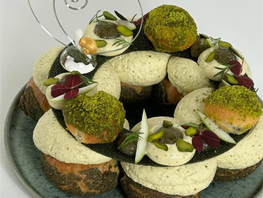 Les 7 Paris-Brest revisités de la Sélection Europe de la Coupe du Monde de Pâtisserie 2024 à Paris. Belgique Danemark France Italie Royaume-Uni Suède Suisse