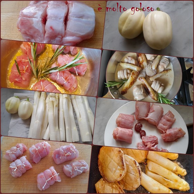 - Laver, couper en 2 les deux mini aubergines blanches. Les étuver à l’huile d’olive, ajouter les asperges pour une légère coloration.