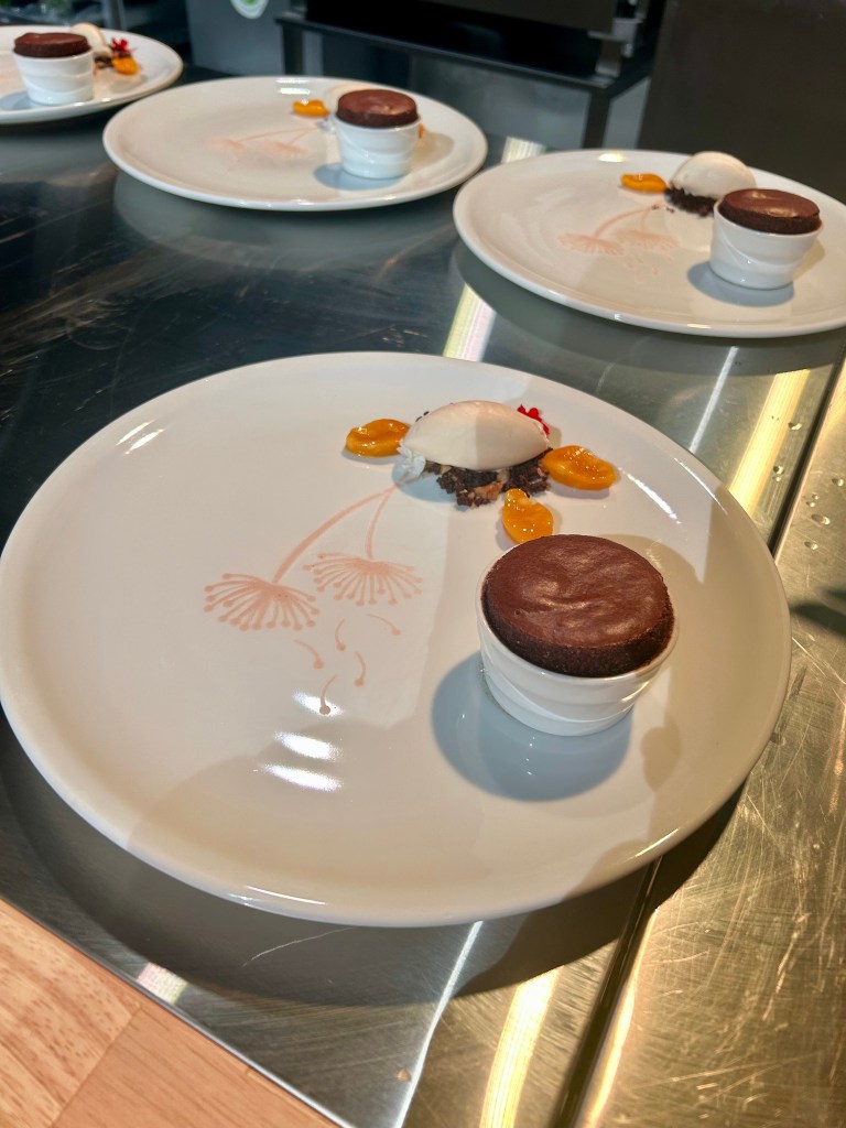 Dessert à l’assiette envoyé et dégusté » à la minute » (2 texture et 2 températures).