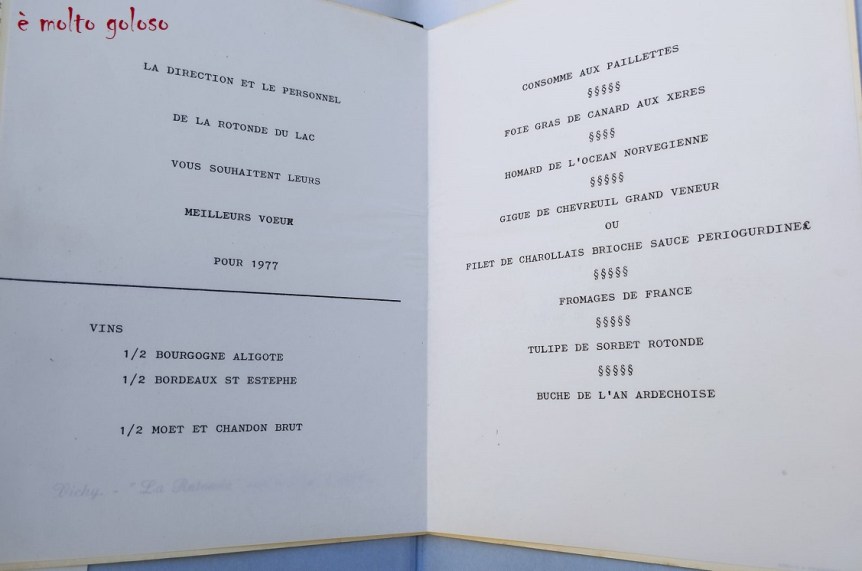 Menu 31 décembre 1976 – restaurant La Rotonde à Vichy (Allier).