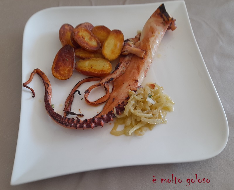 - Dresser sur assiettes chaudes : tentacule, pommes grenailles, fenouil confit. Arroser légèrement de marinade.