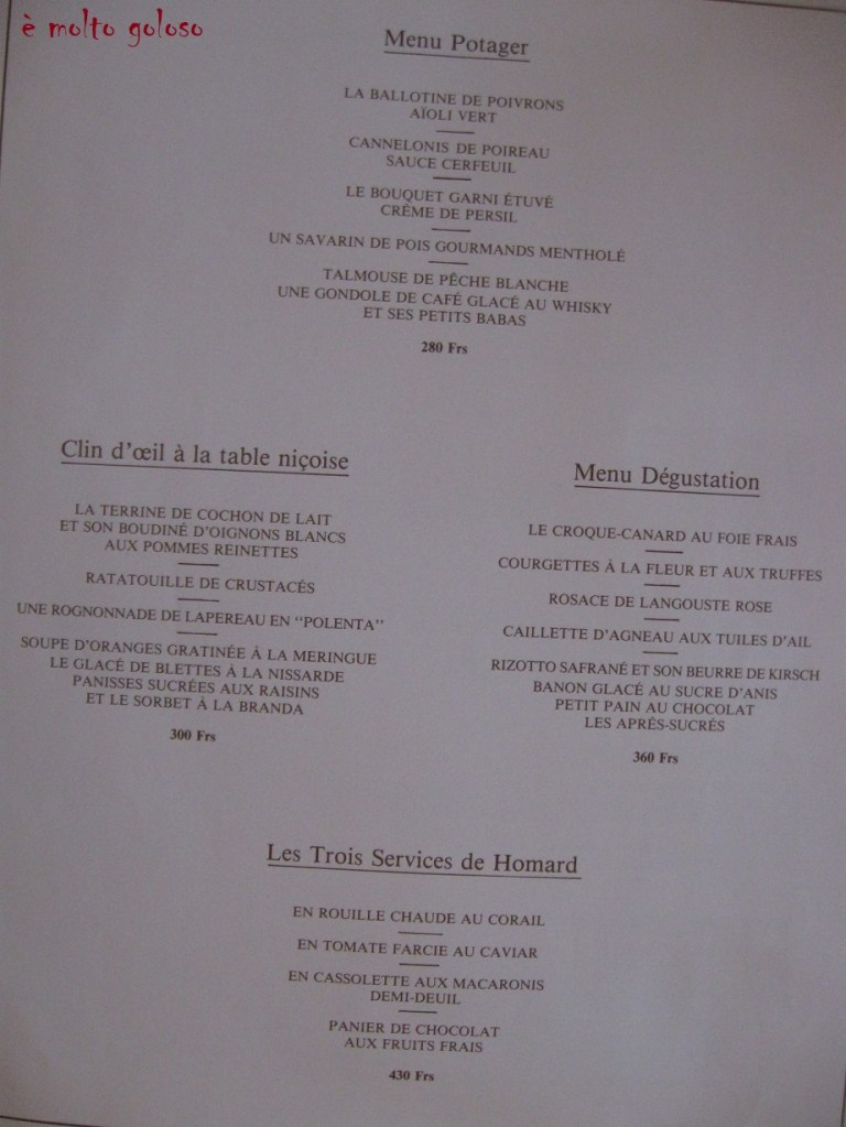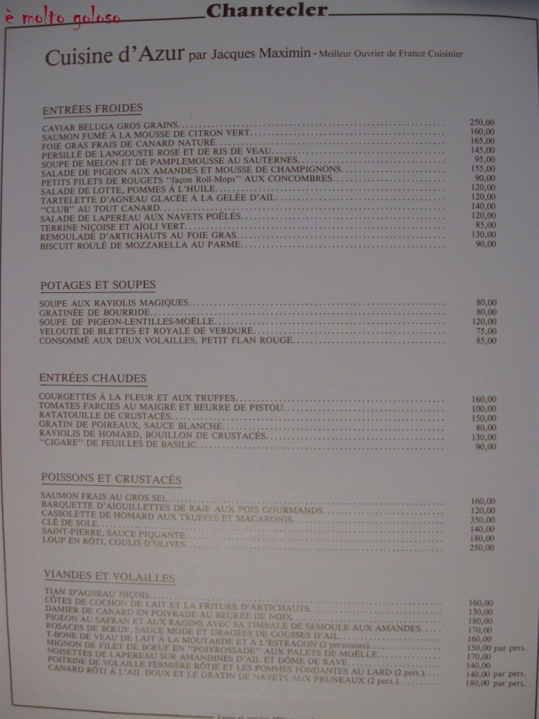 Carte restaurant Chantecler à Nice – Chef Jacques MAXIMIN (MOF Cuisine).