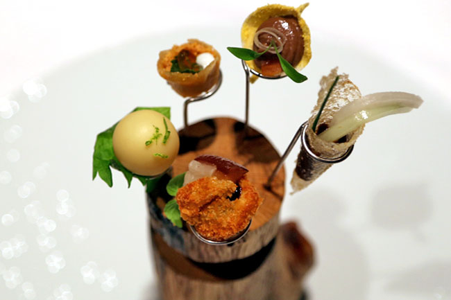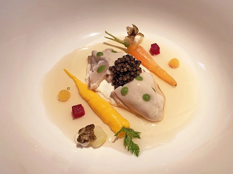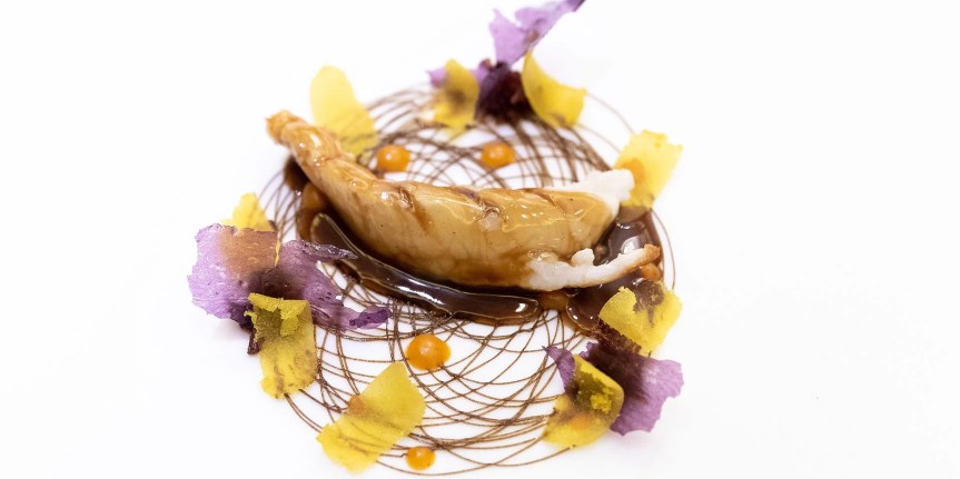 Ces différents ingrédients devront être accompagnés d’un sabayon chaud – sans siphon – à base de jus de homard présenté dans des saucières, qui sera ajouté à l’assiette juste avant la dégustation.