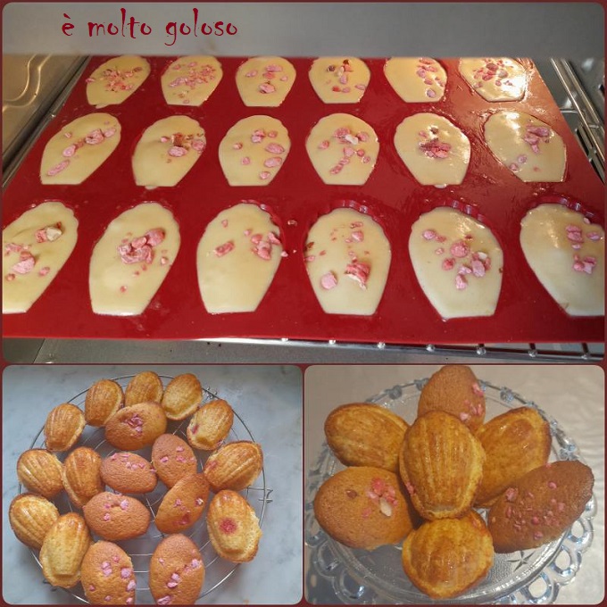- Pocher aux 3/4 les moules à madeleines. Ajouter des pralines concassées.