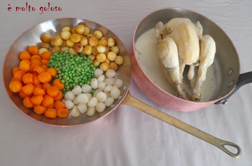 Dressage : sur plat ou assiettes chaudes ; volaille débridée, nappée de sauce suprême et entourée de bouquet de légumes ou morceaux de volaille nappés de sauce avec garniture.
