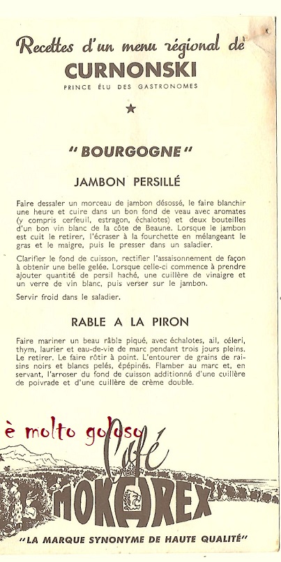 Menu Bourgogne de Curnonsky.