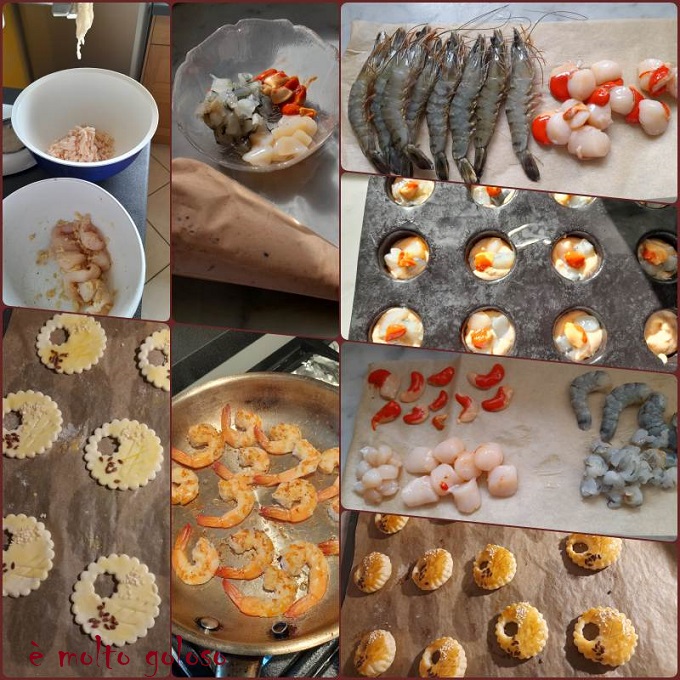 - Tailler en grosse brunoise 8 gambas et les Saint Jacques (noix et corail).