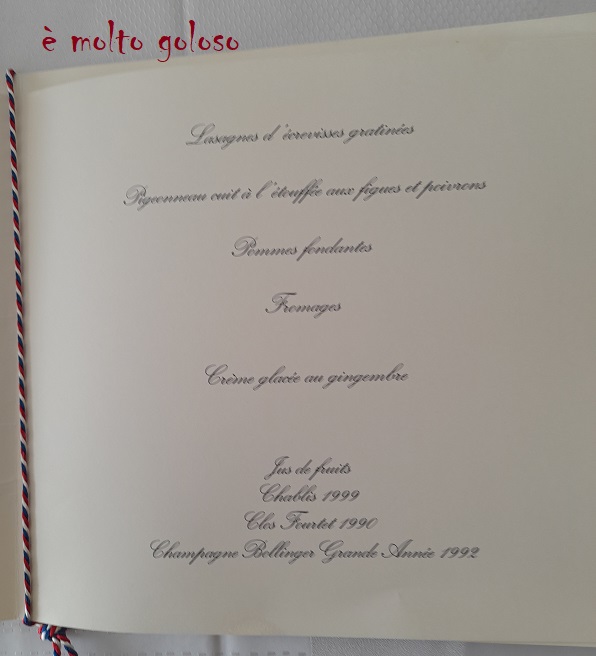 Palais de l’Élysée – menu du 23 mai 2001 – Réception de Yasser Arafat. Partager : Cliquer pour partager sur X(ouvre dans une nouvelle fenêtre) X Cliquez pour partager sur Facebook(ouvre dans une nouvelle fenêtre) Facebook J’aime chargement… Similaire