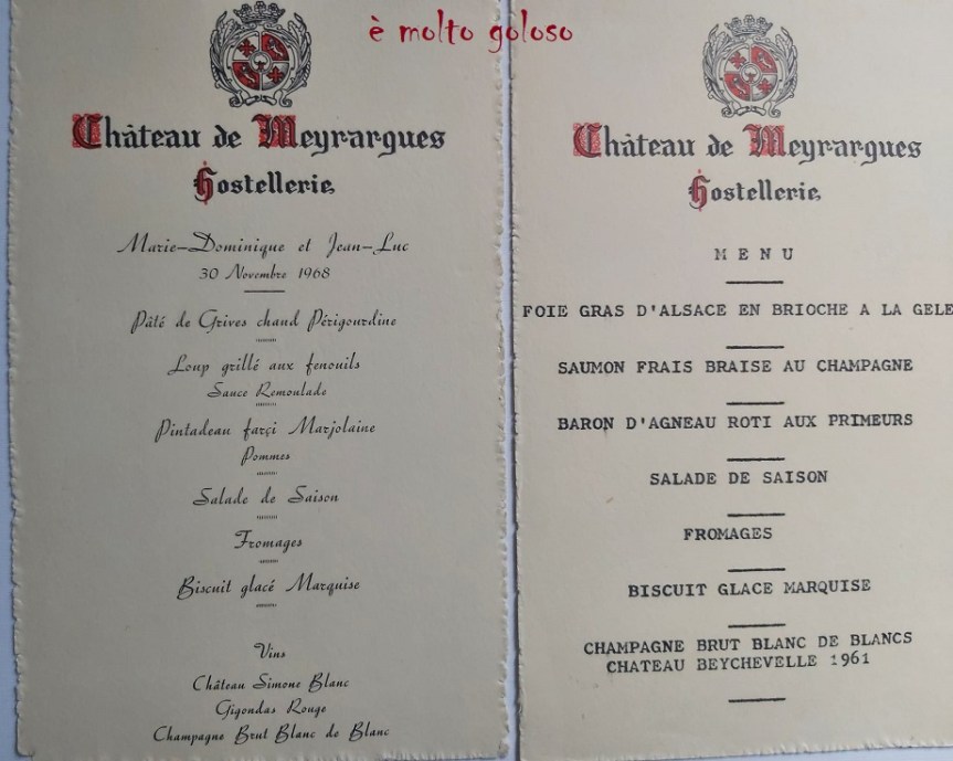 Menus 30 novembre 1968 – Château de Meyrargues (13).