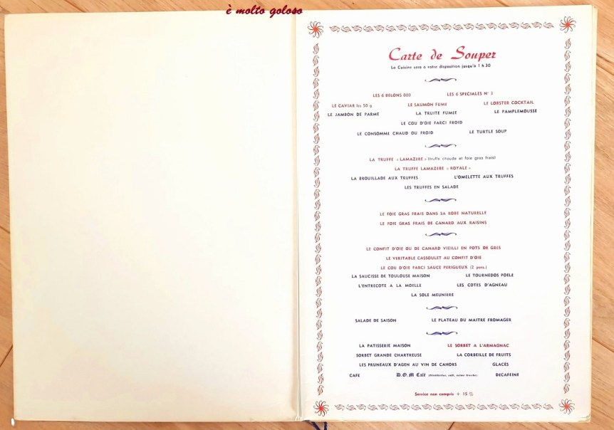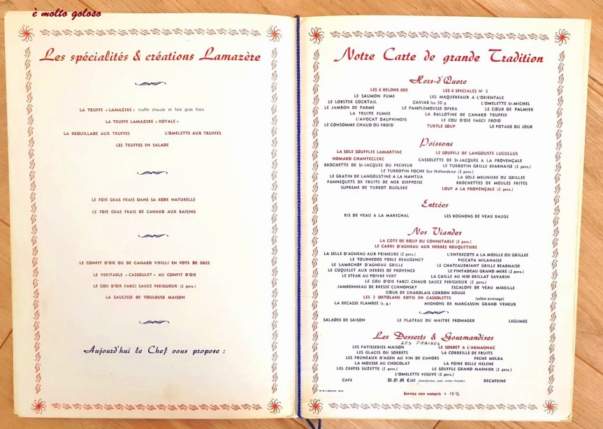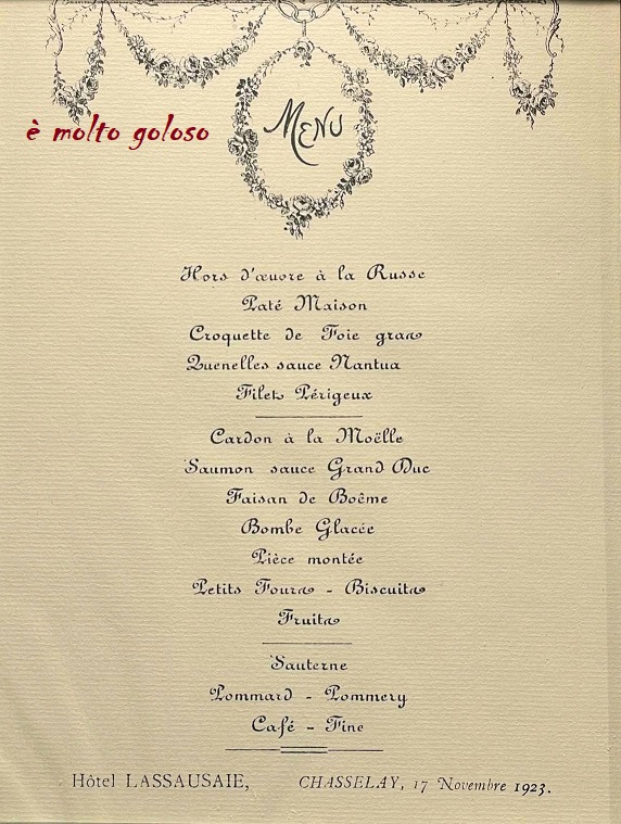 Menu Hôtel Lassausaie à Chasselay (Rhône) – 17 novembre 1923.