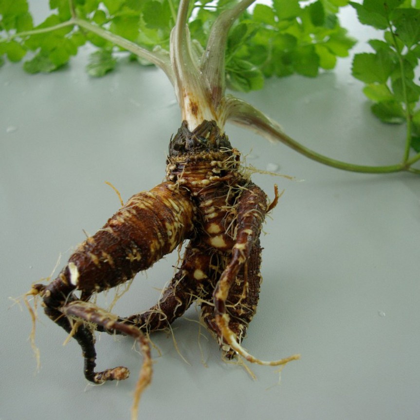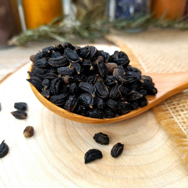 Ses grosses graines noires et sèches sont utilisées comme condiment et les racines s’utilisent comme le panais.
