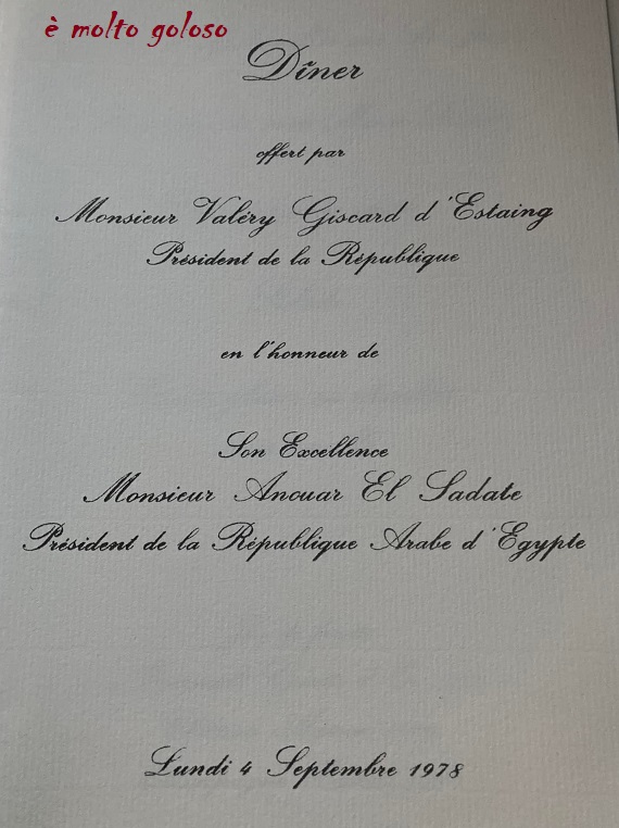 Dîner Palais de L’Élysée – lundi 4 septembre 1978.