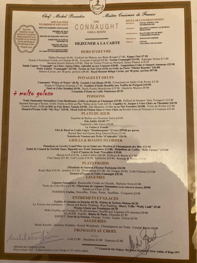 Restaurant The Connaught (Grill Room) – Chef Michel Bourdin.