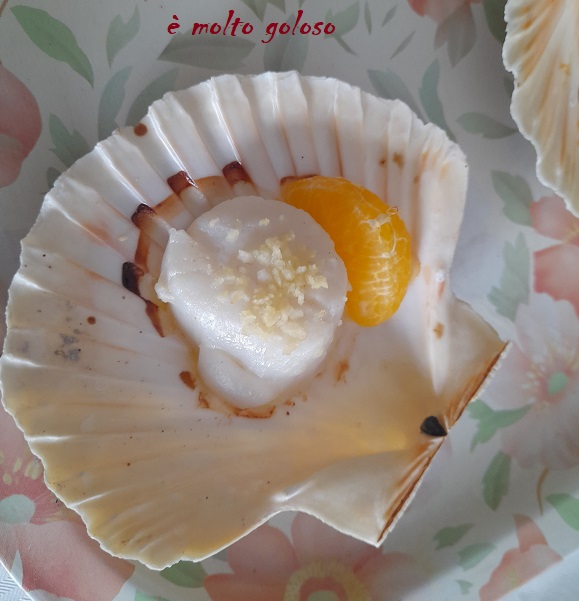 - Ajouter huile d’olive, jus de clémentine dans les coquilles. Poser les noix de Saint Jacques.