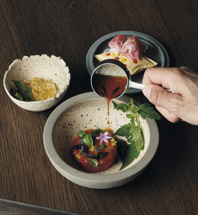 Son menu Emozioni plein de saveurs de l’enfance ; son menu Voyage inspiré de ses pérégrinations à travers le monde ; et enfin le Mad100% Natura, un menu à l’aveugle aussi étonnant que créatif, démontrent l’évolution culinaire du jeune Chef .